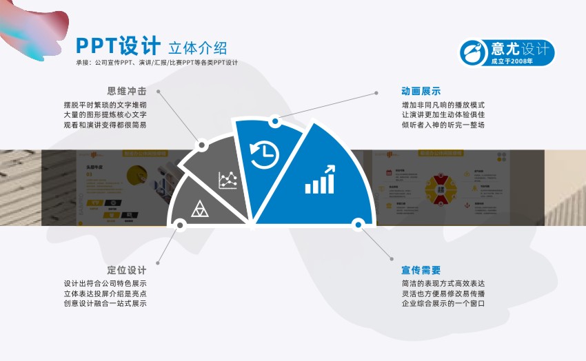蘇州意尤文化傳播有限公司是一家有著多年廣告設(shè)計(jì)經(jīng)驗(yàn)的蘇州知名廣告企業(yè) 主要業(yè)務(wù)有蘇州PPT設(shè)計(jì)、蘇州產(chǎn)品PPT設(shè)計(jì)、蘇州企業(yè)PPT設(shè)計(jì)、蘇州會(huì)議PPT設(shè)計(jì)、蘇州項(xiàng)目PPT設(shè)計(jì)、企業(yè)VI設(shè)計(jì)、設(shè)計(jì)印刷宣傳冊(cè)/樣本/單頁(yè)/名片等 自2007年成立以來(lái),蘇州意尤廣告公司與蘇州及蘇州各市的幾百家中外企業(yè)進(jìn)行了廣告設(shè)計(jì)合作,經(jīng)過多年發(fā)展公司已形成了以企業(yè)PPT設(shè)計(jì)、企業(yè)VI設(shè)計(jì),廣告設(shè)計(jì),廣告印刷,樣本設(shè)計(jì),宣傳冊(cè)設(shè)計(jì),名片印刷,菜譜制作,單頁(yè),宣傳單等一批特長(zhǎng)業(yè)務(wù),相信在各位新老客戶的關(guān)心下,本公司會(huì)得到更大的發(fā)展,同時(shí)為客戶的發(fā)展宣傳保駕護(hù)航。